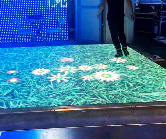 而現(xiàn)在的LED地磚屏不僅在基礎(chǔ)性能上有所進步,還能添加了新的功能--感應(yīng)互動?;覮ED地磚屏里面裝載有壓力傳感器或電容式傳感器或紅外傳感器等設(shè)備,當(dāng)人在地磚屏上移動時,傳感器能感應(yīng)到人的位置并將觸發(fā)信息反饋給主控制器,然后主控制器邏輯判斷后輸出相應(yīng)的顯示效果。