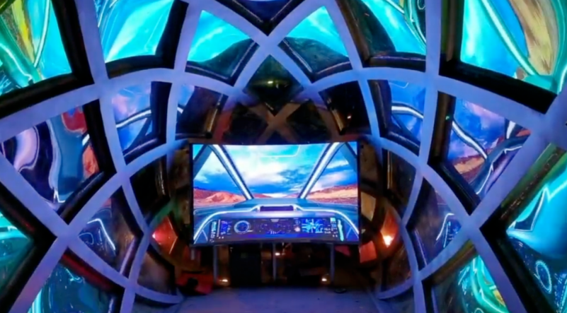 公園最東部的“未來(lái)展示”區(qū),以高鐵造型為原型,通過(guò)動(dòng)感流線造型設(shè)計(jì),表達(dá)科學(xué)與藝術(shù)在時(shí)空中飛馳。“未來(lái)展示”區(qū)的模擬“駕駛艙”依托利亞德小間距LED顯示屏、Micro LED顯示屏系統(tǒng),高清畫(huà)質(zhì)、高分辨率及出眾的色彩還原能力,近乎完美的顯示效果,讓市民體驗(yàn)“機(jī)車”的沉浸式極速飛行。